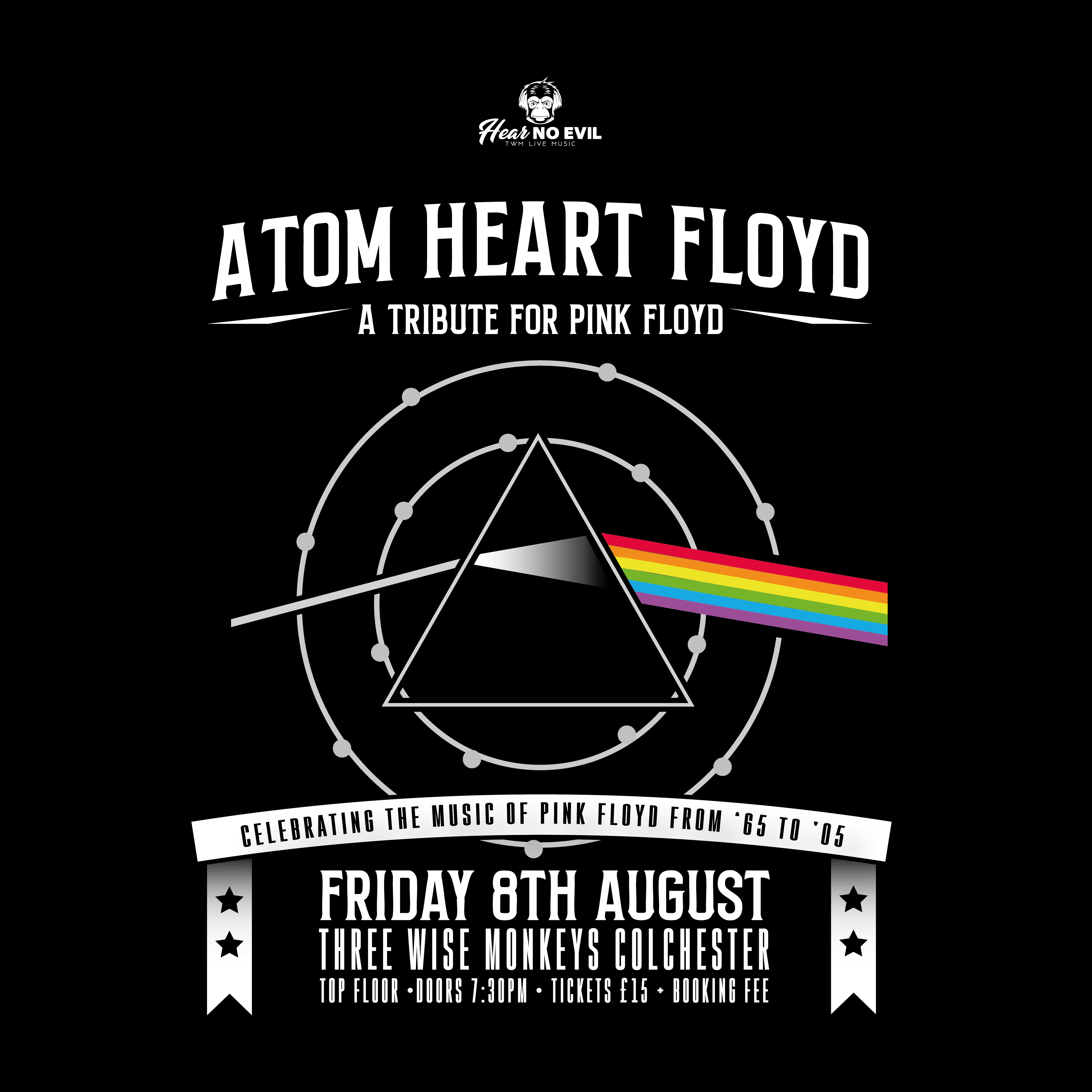 Join us for an extraordinary evening as Atom Heart Floyd pays tribute to one of the most iconic bands in history, Pink Floyd. This tour continues to celebrate the timeless classic *The Dark Side of the Moon*, arguably one of the most successful albums of all time. Attendees can look forward to a nod to Pink Floyd’s legendary performance at Wembley in 1974, a show many regard as one of their finest, and a revisit of their memorable concert at Earls Court in 1994.