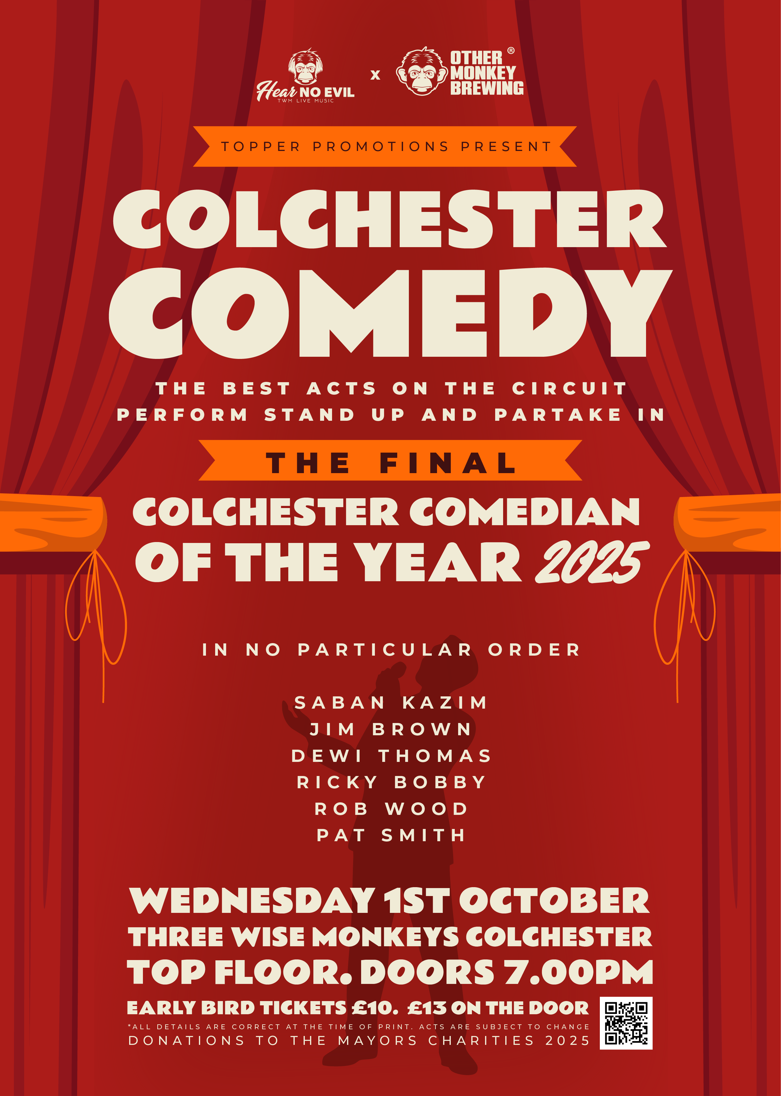 This is it, Colchester! The night we’ve all been waiting for. The search is over, the battles have been won, and six comedy heavyweights have risen to the top. Now, they face off in one last, glorious showdown for the ultimate prize: the title of Colchester Comedian of the Year 2025!