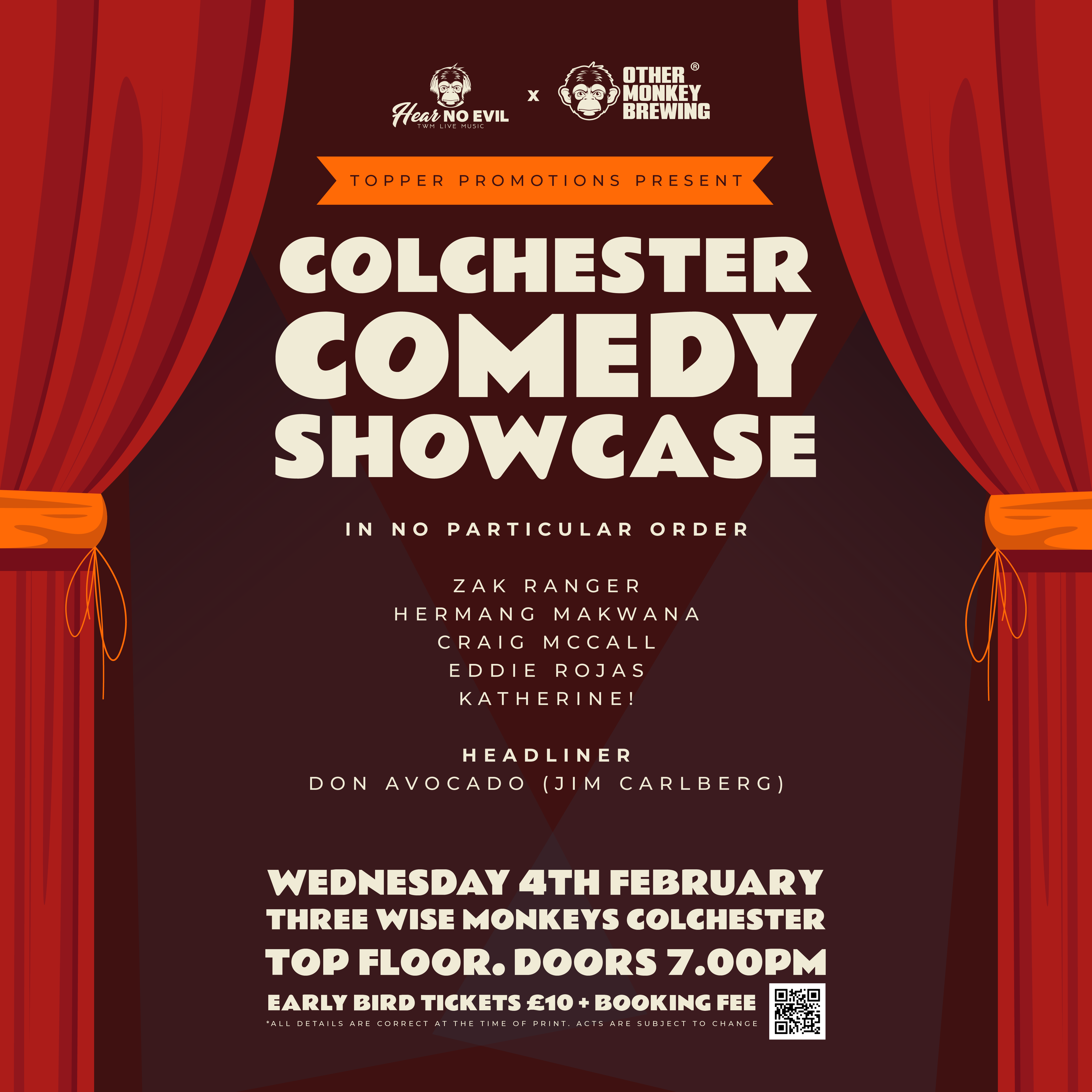 Join us at Three Wise Monkeys, Colchester, for a comedy showcase that promises a bang for your buck!