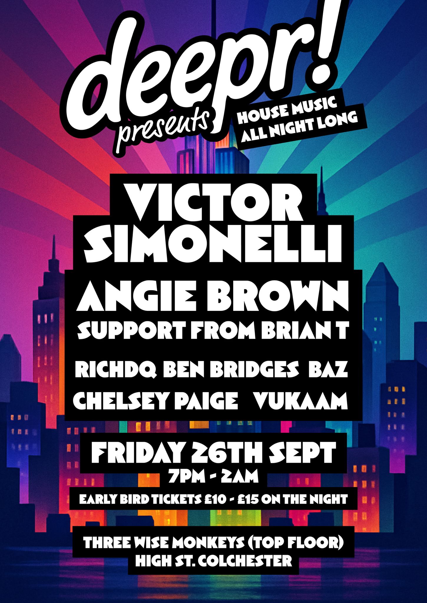 Deepr is back with a serious night of proper house music, bringing together legends of the scene with local favourites for a one-off party on the top floor of Three Wise Monkeys in Colchester.