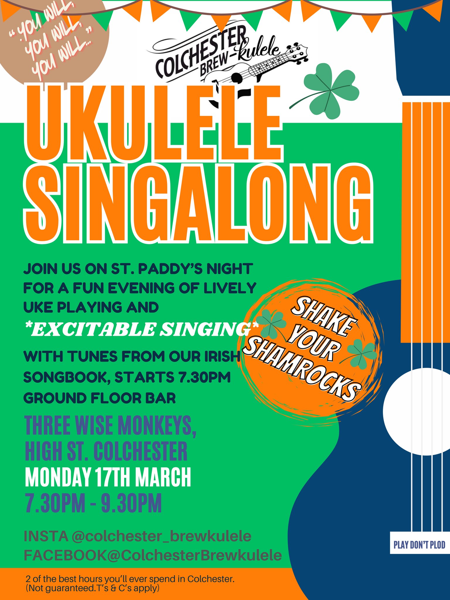 Come and join in with the fun. All your favourite Irish tunes belted out on uke, accordian, fiddle, bing bongs and anything else we can get a tune out of.