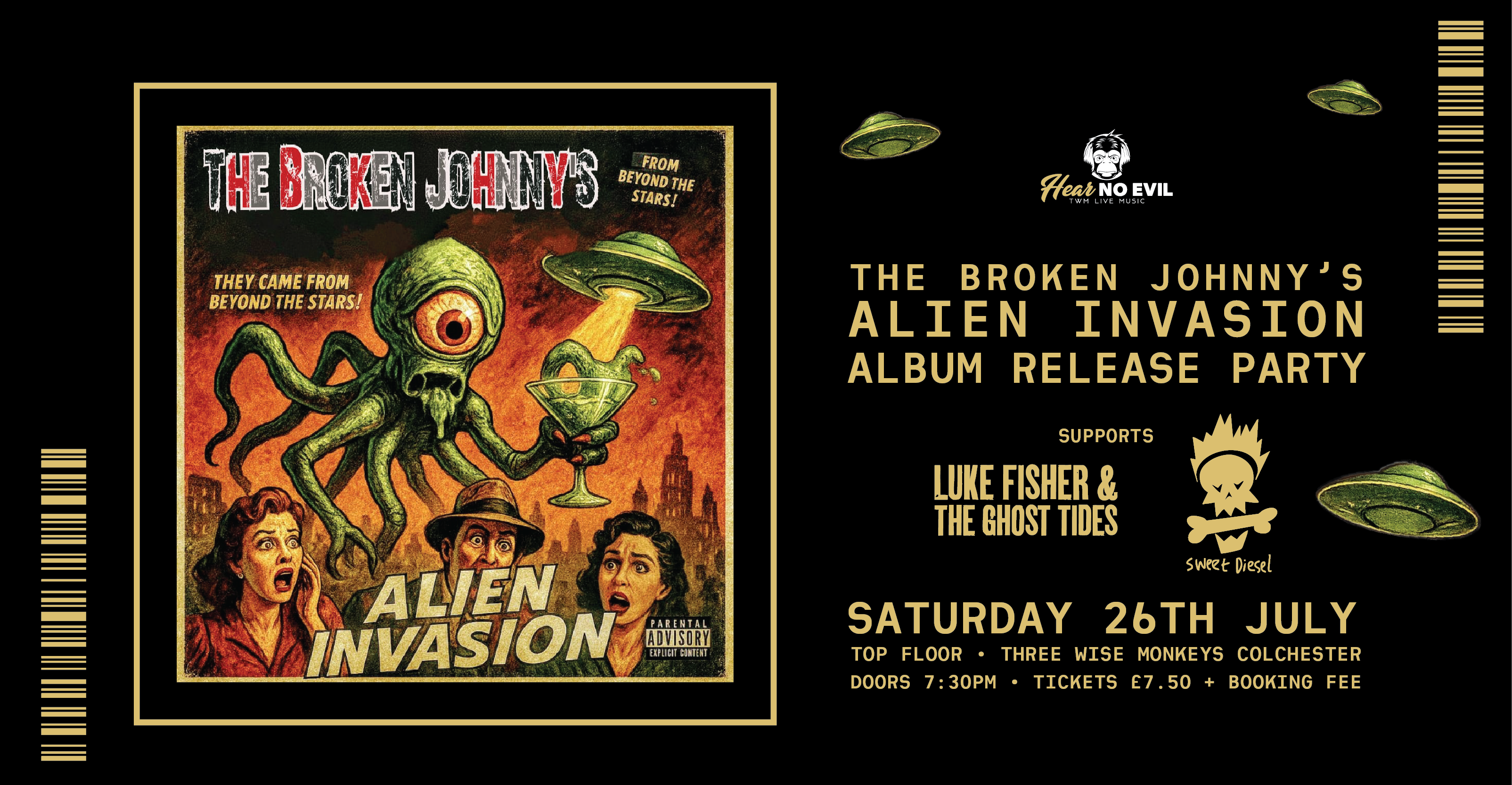 The Broken Johnny’s “Alien Invasion” Album Release Party Special Guests: Luke Fisher + Sweet Diesel
