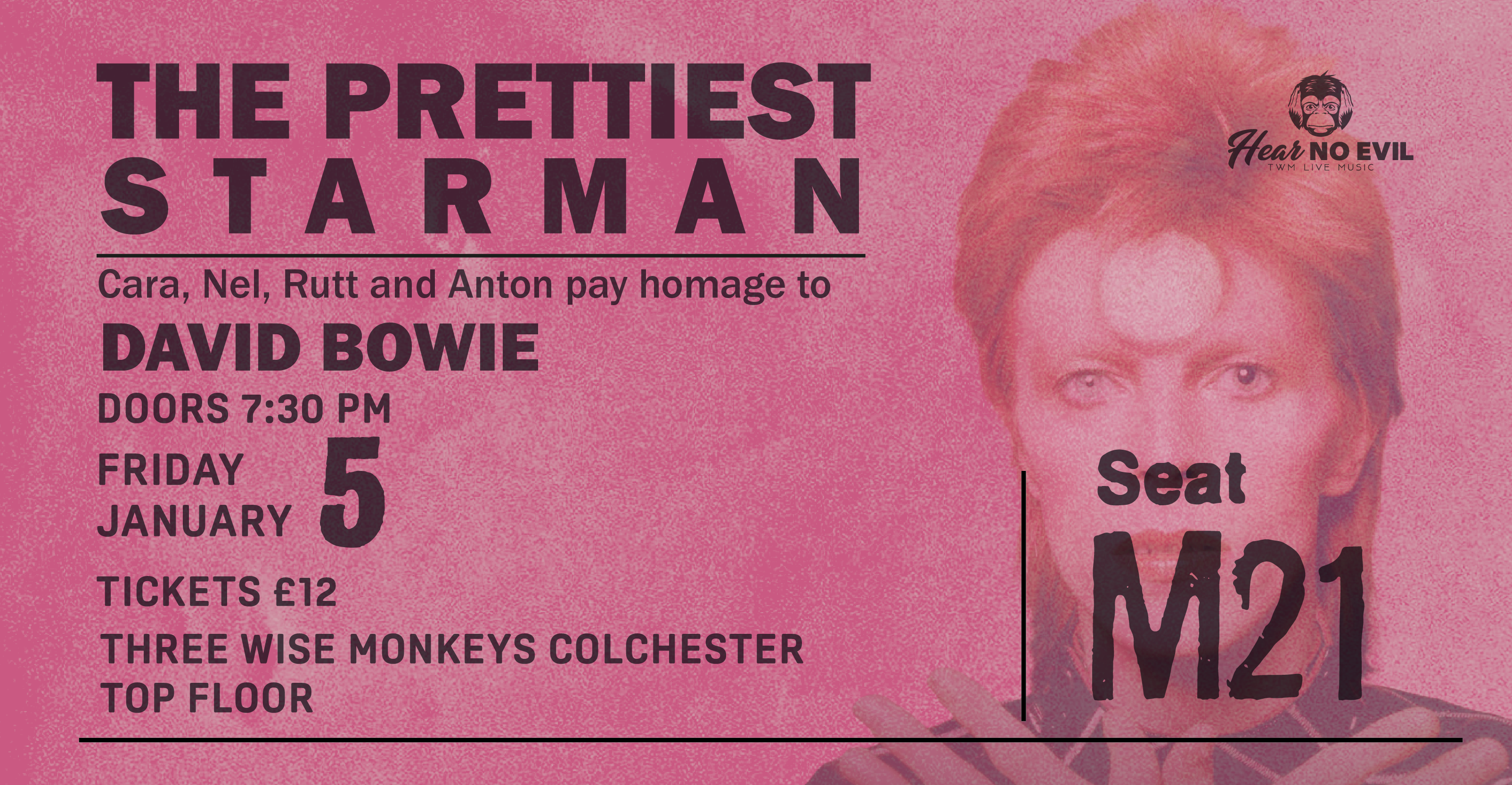Good news, music lovers! Brace yourselves for an unforgettable night of homage to the iconic David Bowie, as The Prettiest Starman returns for one last performance at The 3 Wise Monkeys in Colchester on Friday, January 5th, 2024.